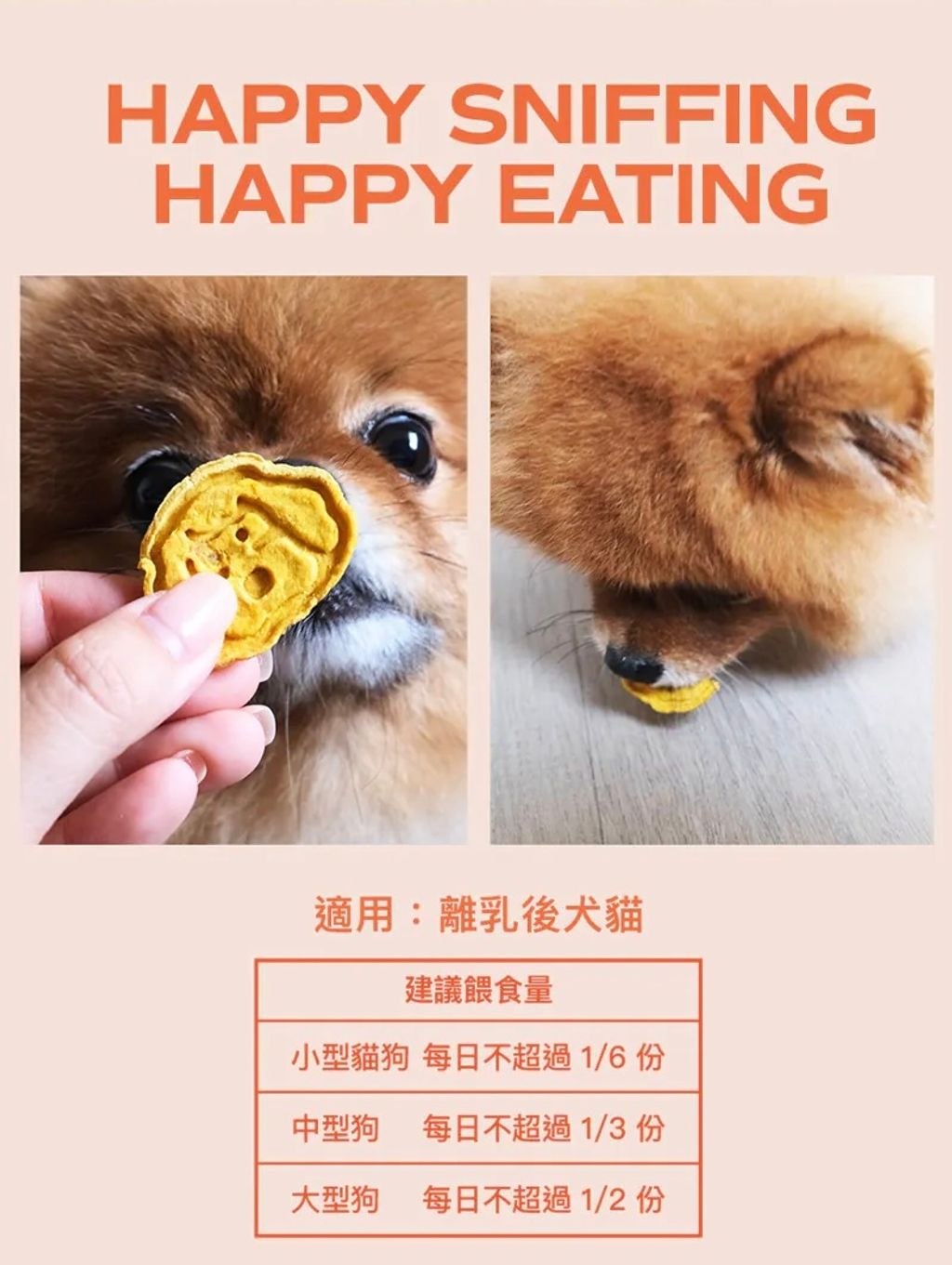 此款原肉餅乾使用低脂火雞肉、南瓜、燕麥、成份單純質地鬆脆好剝。
